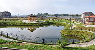 Лесной участок 33 сотки с ландшафтным дизайном. На территории участка расположены беседка для барбекю и теплицы.