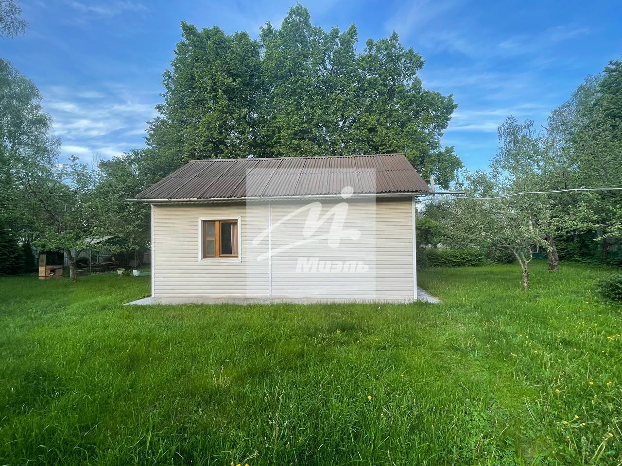 На участке гараж, сарай, растут яблони, вишня, слива, смородина.