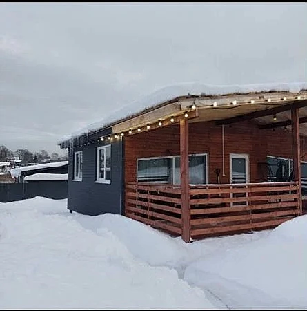 "Зимний дом 75 кв. м. на участке 7,5 соток в гор. Солнечногорске, ул. Деревенская. 48 км от МКАД по Ленинградскому шоссе. Дом каркасный 2023 года постройки на свайном фундаменте, кровля из профлиста. В доме никто не жил. В доме две комнаты, зал-кухня, санузел.
