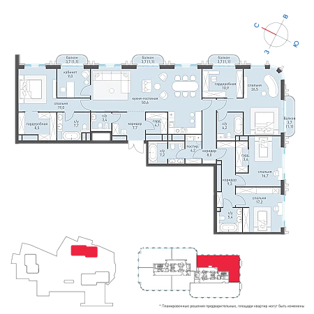 Купить 5к квартиру 231 м² в ЖК Татарская 35