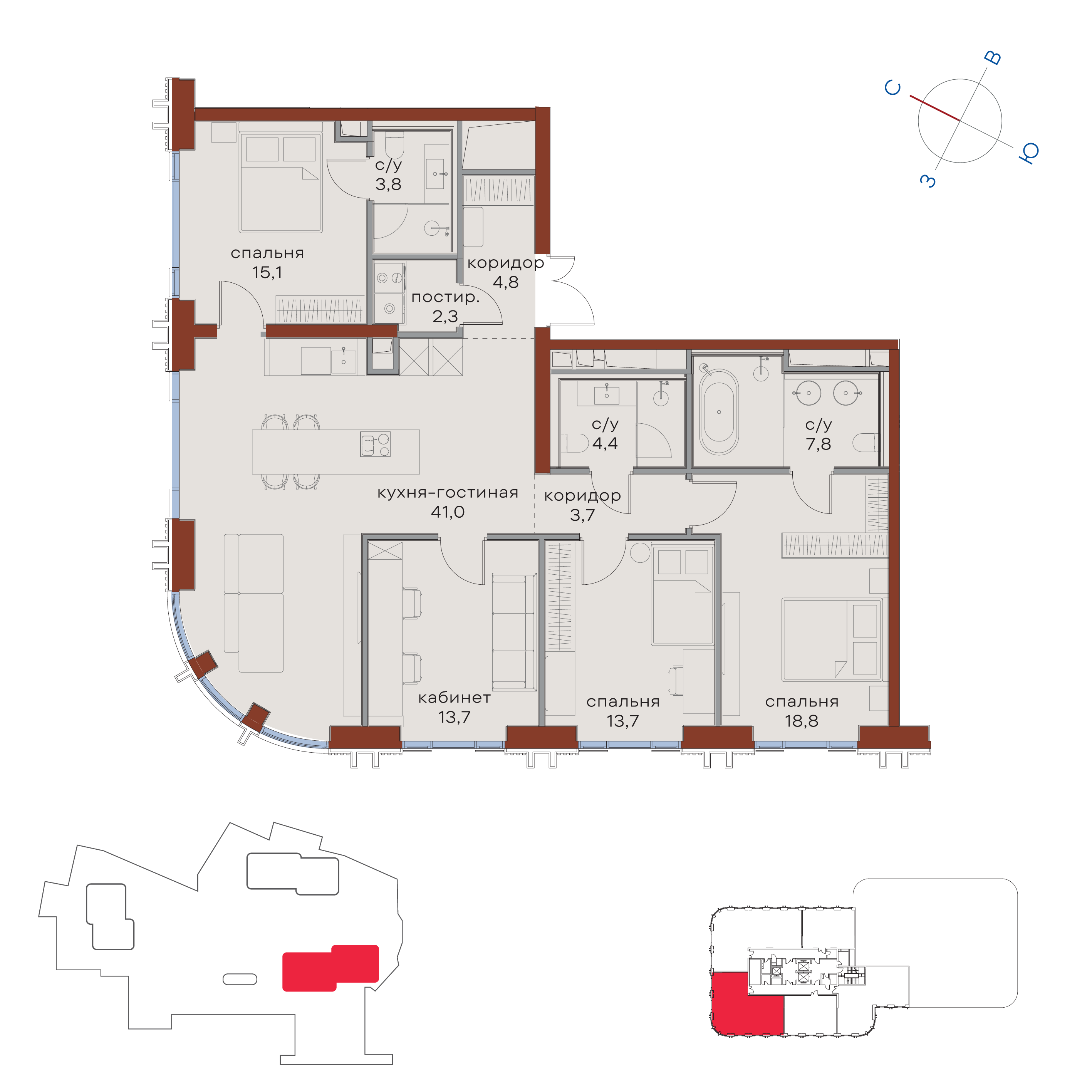 Купить 4к квартиру 129 м² в ЖК Татарская 35