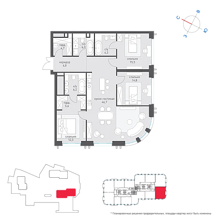 Купить 3к квартиру 128 м² в ЖК Татарская 35
