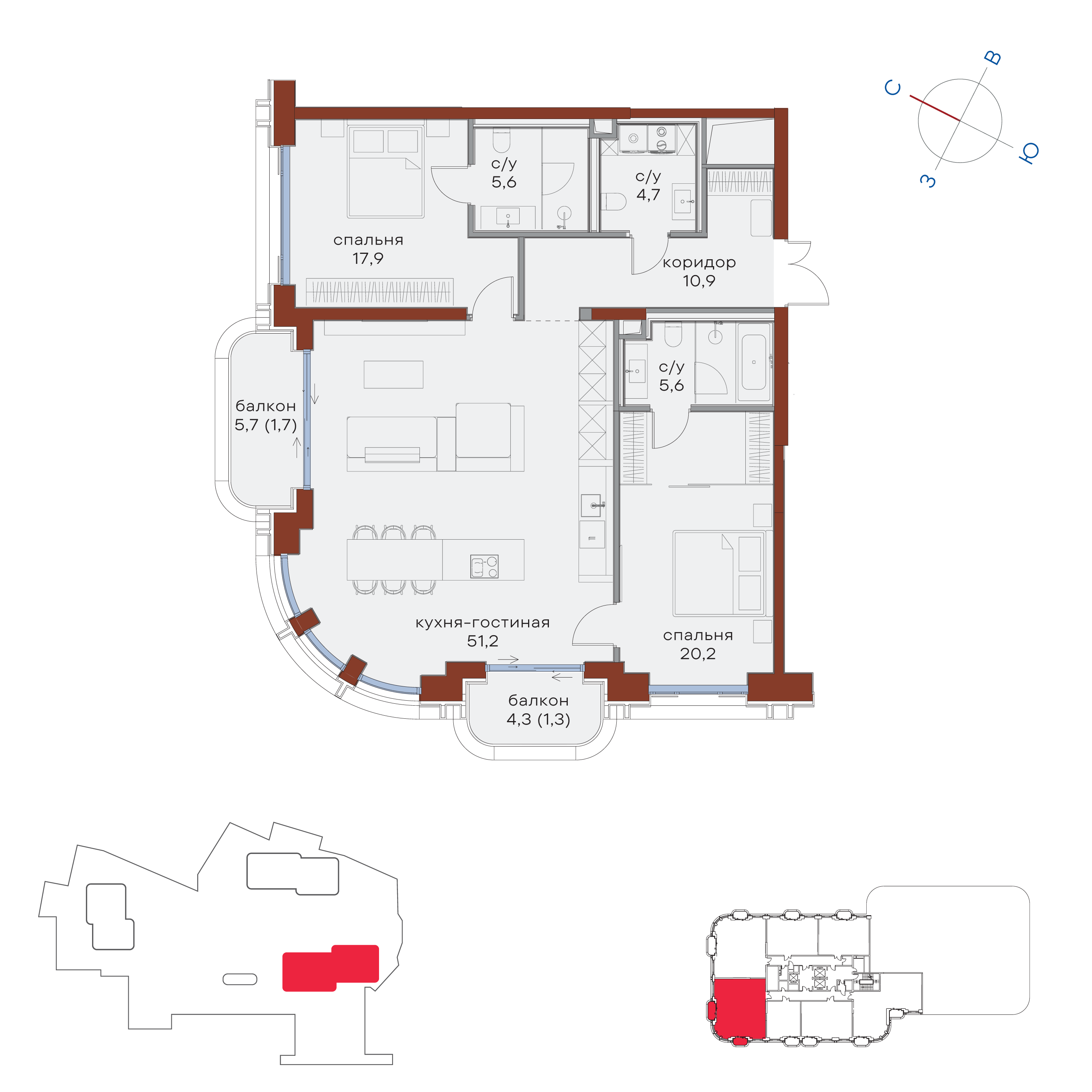 Купить 2к квартиру 119 м² в ЖК Татарская 35
