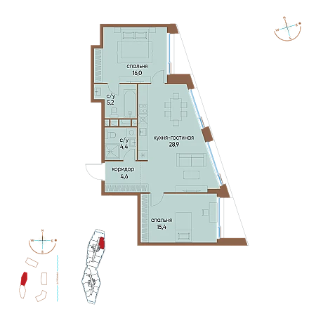 Стоимость квартиры со скидкой 8% при 100% оплате 46264500 руб.