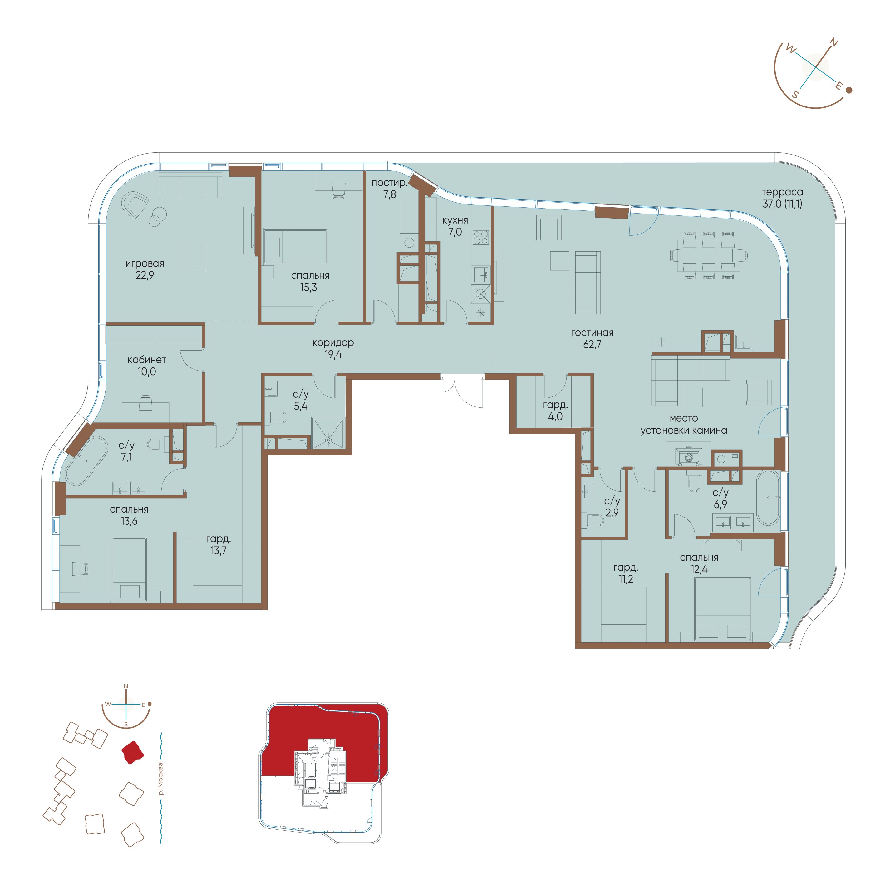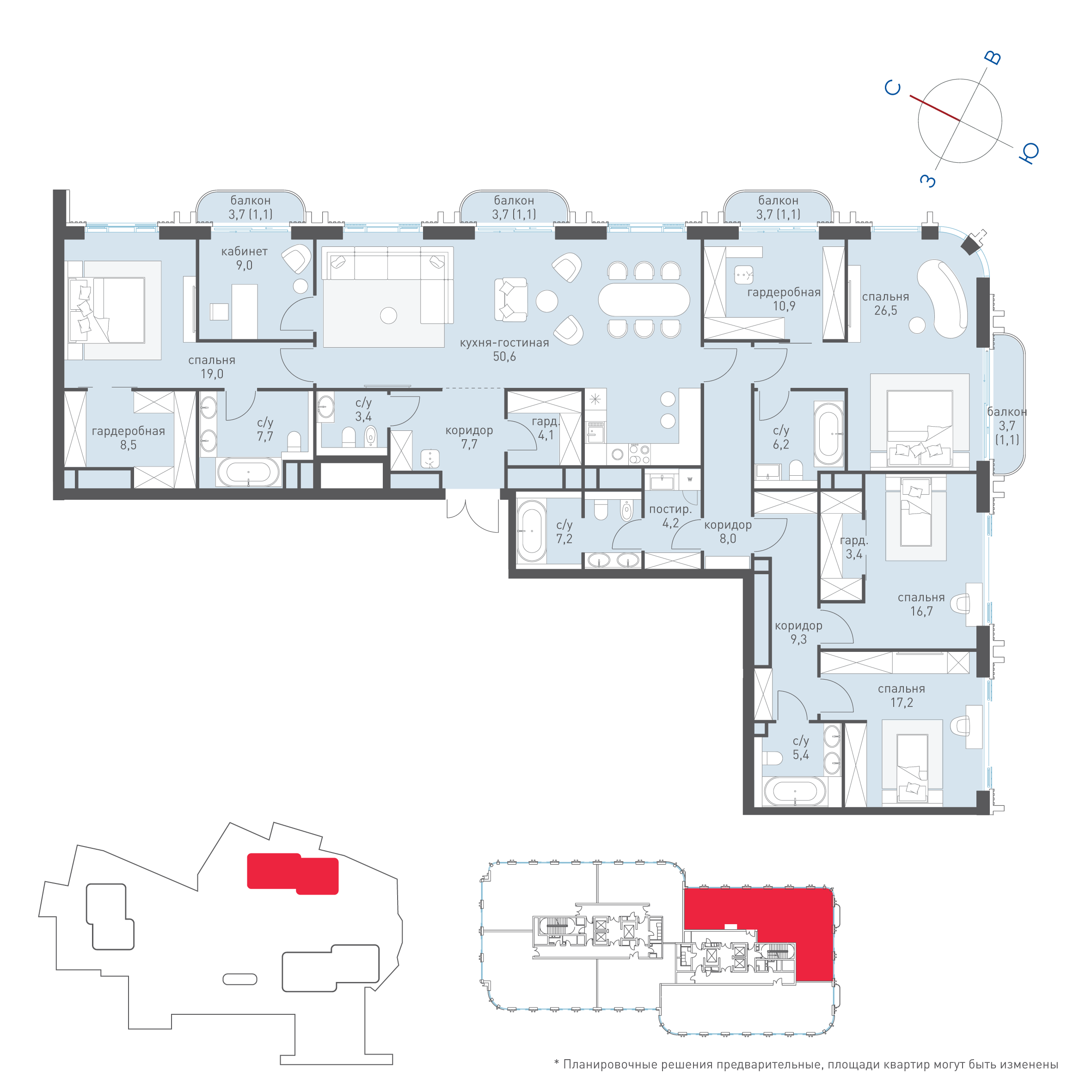 Стоимость квартиры со скидкой 8% при 100% оплате 377559168 руб.