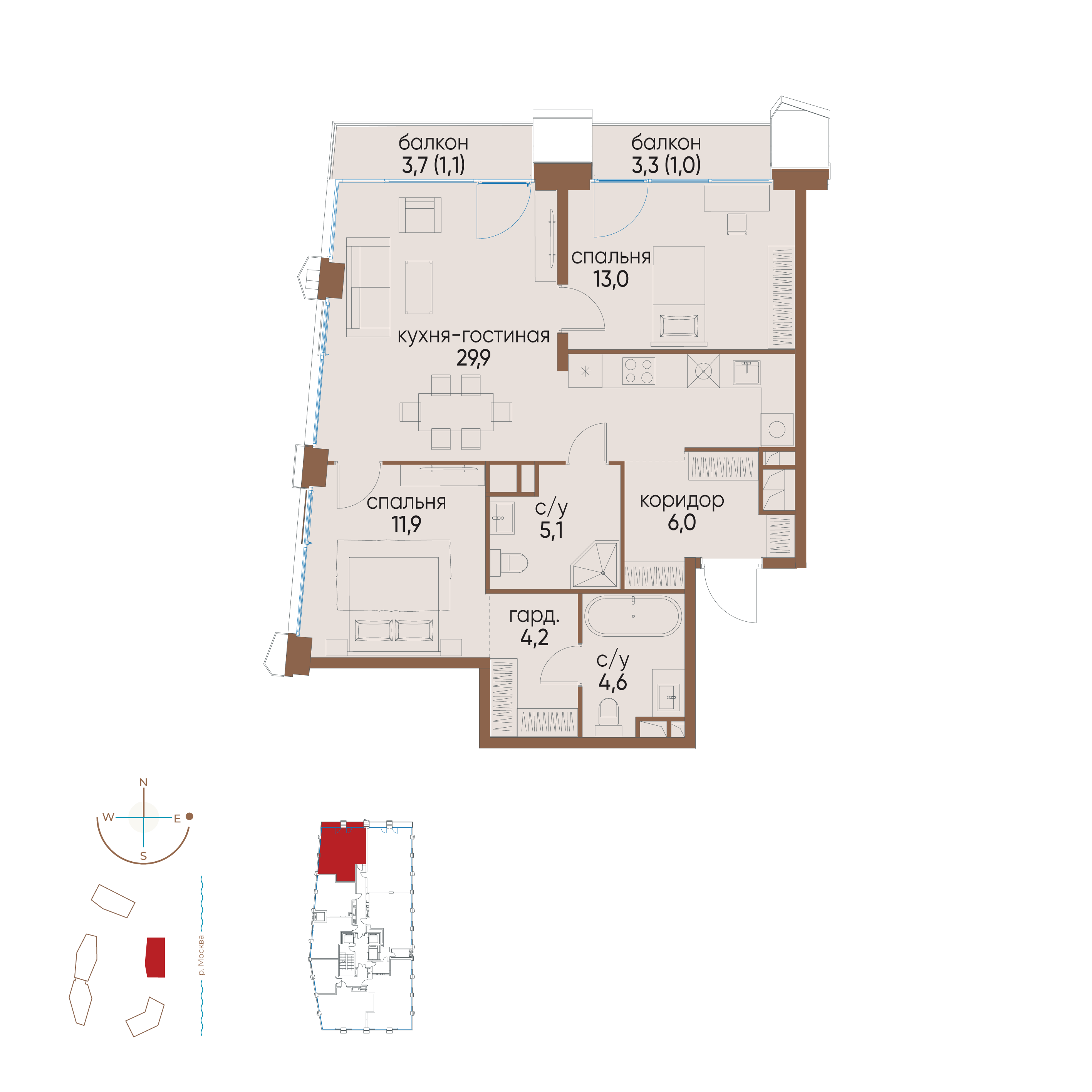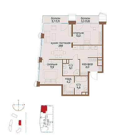 Стоимость квартиры со скидкой 10% при 100% оплате 58129920 руб.