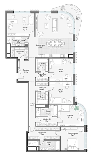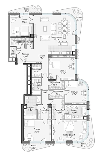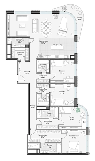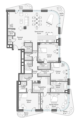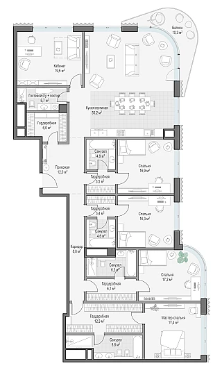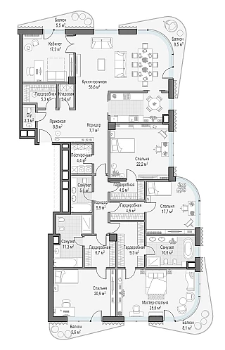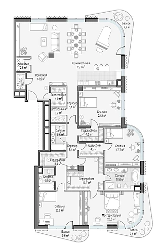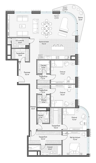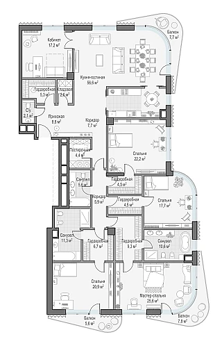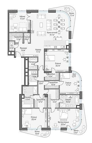 Купить 5к квартиру 263 м² в ЖК Татарская 35