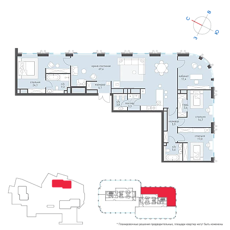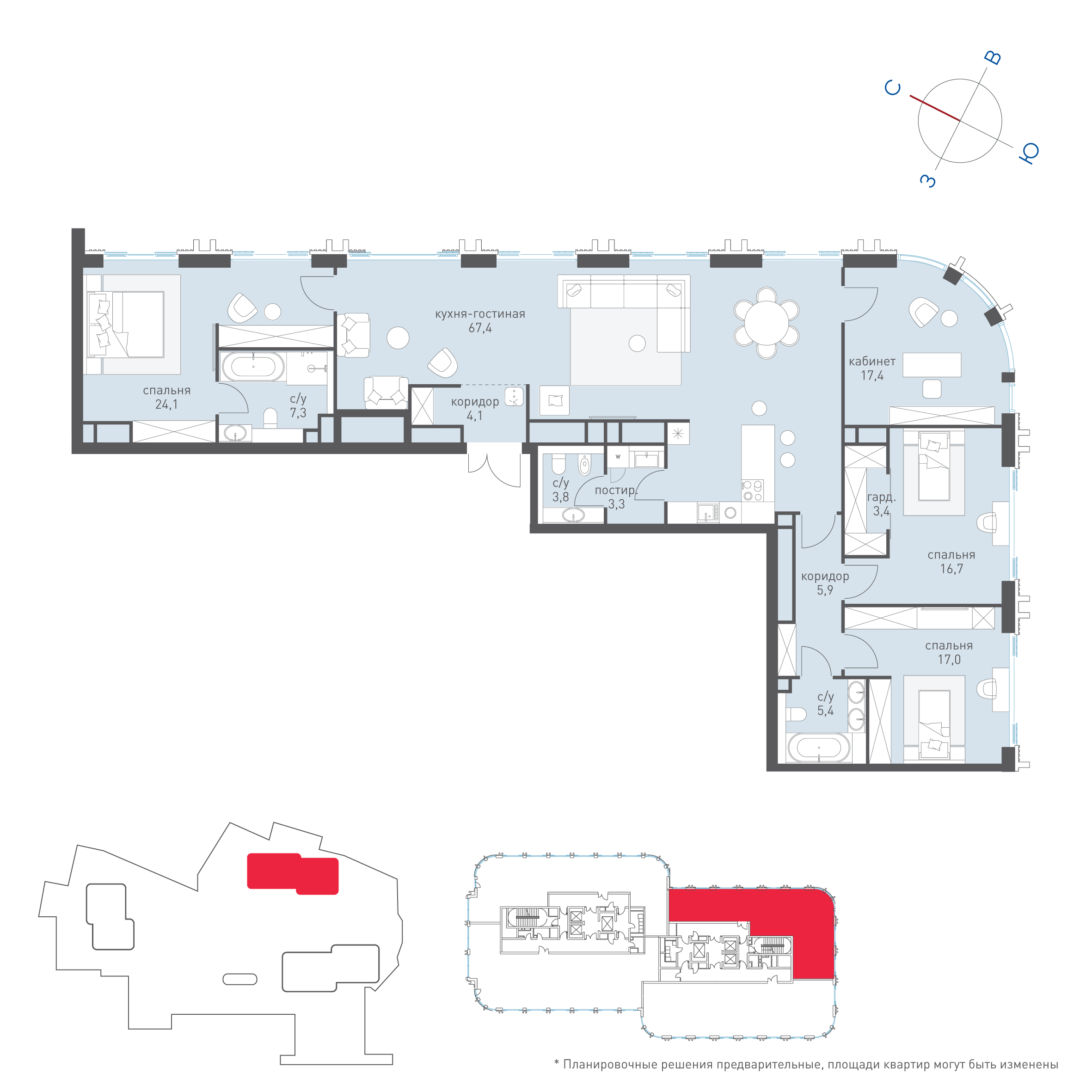 Купить 4к квартиру 177 м² в ЖК Татарская 35