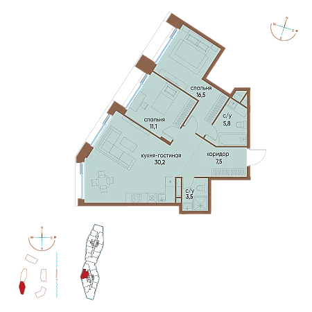 Купить 2к квартиру 74 м²