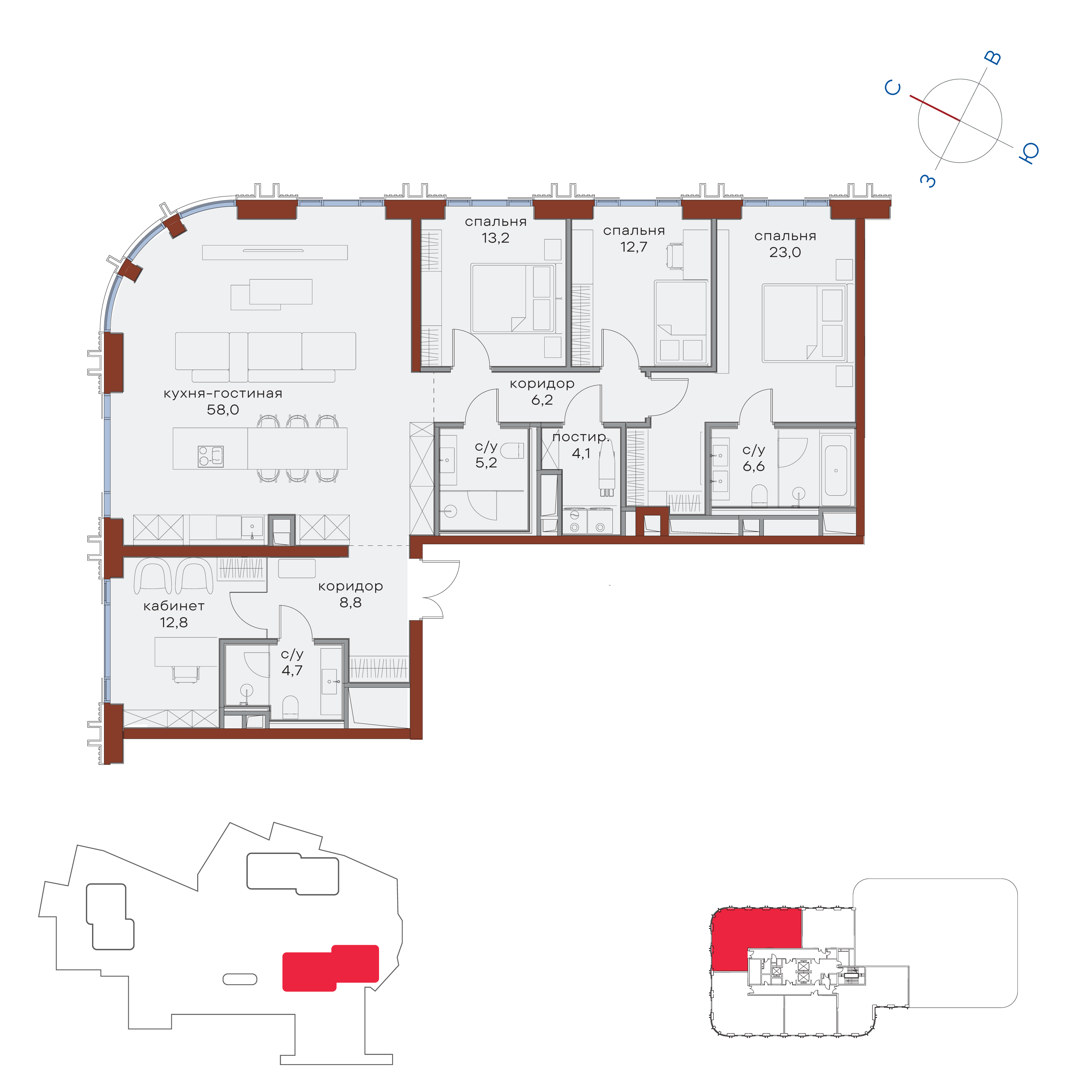 Купить 4к квартиру 155 м² в ЖК Татарская 35