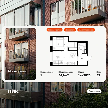 Купить 1к квартиру 35 м² в ЖК Сердце Столицы