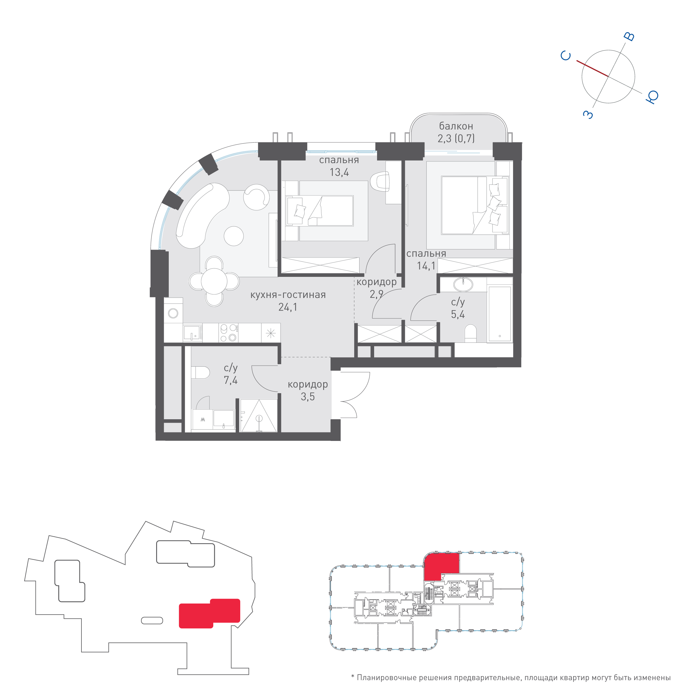 Купить 2к квартиру 74 м² в ЖК Татарская 35