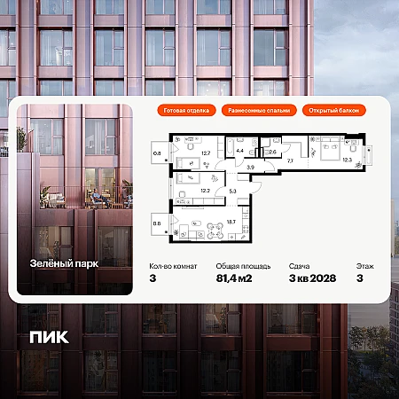 Купить 2к квартиру 81 м² в ЖК Одинбург