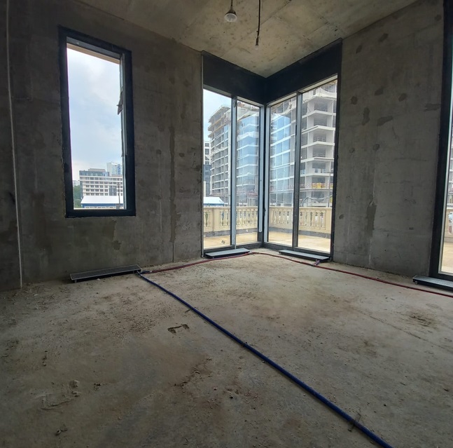 Панорамное остекление. Отдельный вход. Возможность получения мед. лицензии ( отсутствует паркинг под помещением). Электрическая мощность 16,6 кВт. Без отделки. На время ремонта предоставляются арендные каникулы.