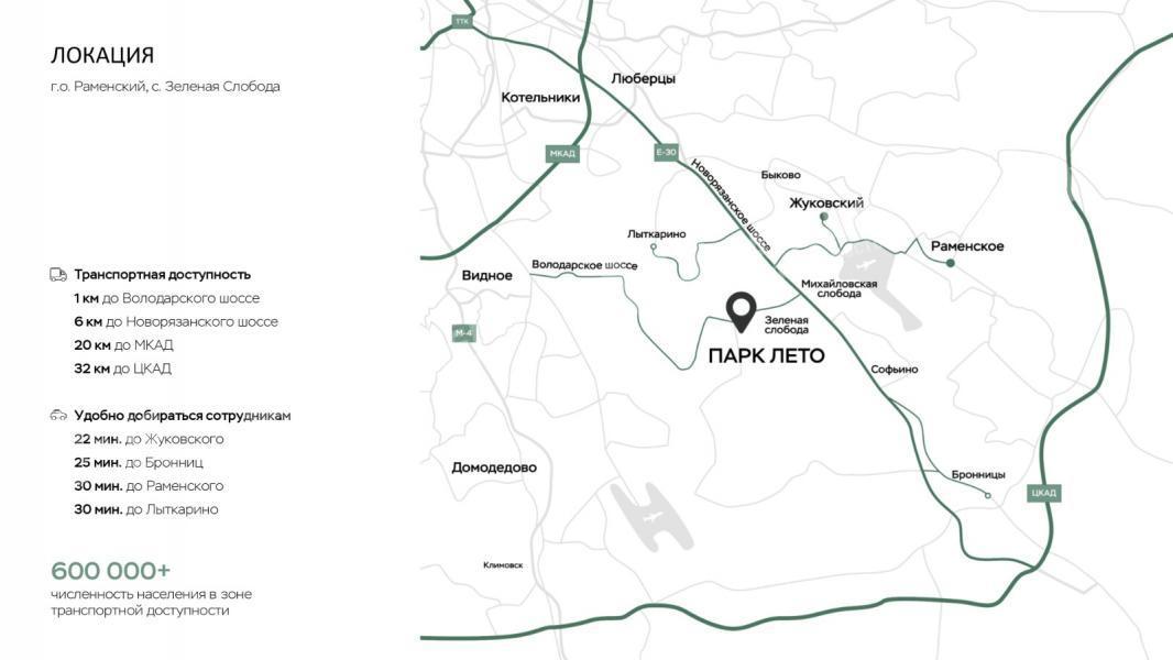 Индустриальный парк расположен на юго-востоке Московской области, в 20 км от МКАД по Новорязанскому шоссе (М-5). Удобное местоположение в окружении населенных пунктов и близость к Москве обеспечивают доступ к трудовым ресурсам и транспортную доступность.