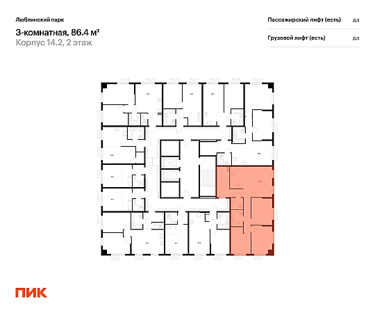 Продаётся 3-комн.квартира площадью 86.40 кв.м на 2 этаже 17 этажного дома (Корпус 14.2, секция 2) проекта ПИК Люблинский парк. Светлый просторный подъезд на уровне земли, функциональная планировка, большие окна, с отделкой.