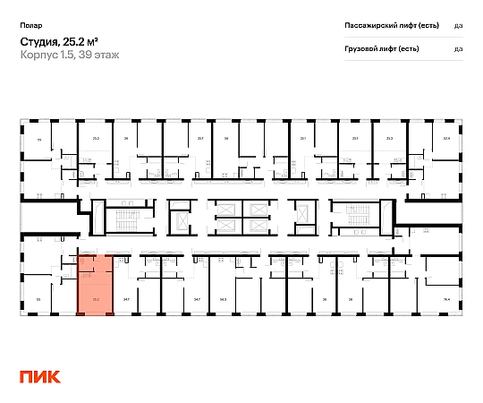 Продаётся квартира-студия площадью 25.20 кв.м на 27 этаже 62 этажного дома (Корпус 1.5, секция 2) проекта ПИК Полар. Светлый просторный подъезд на уровне земли, функциональная планировка, большие окна, с отделкой.