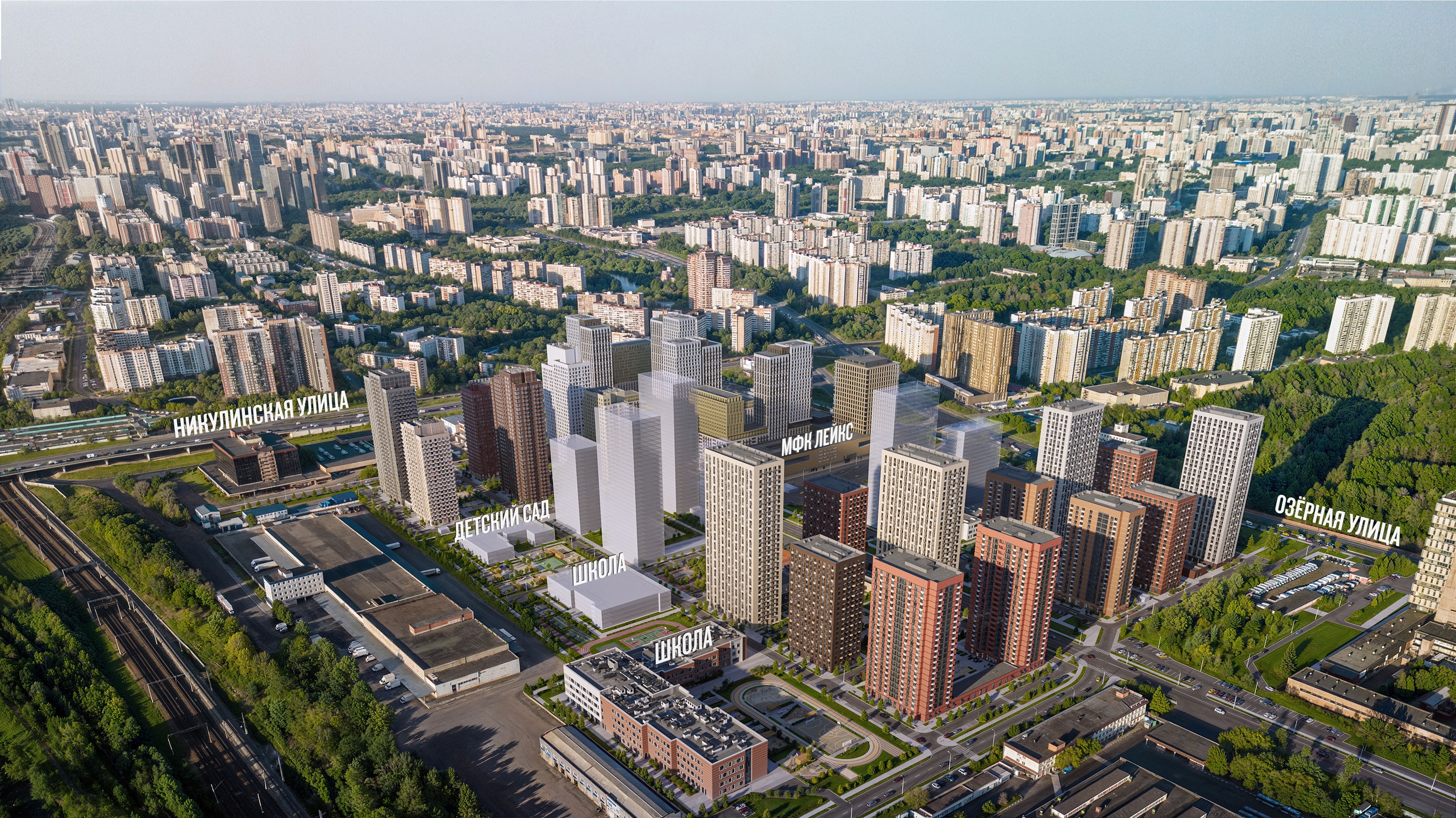 На территории проекта появятся две школы, два детских сада и МФК ЛЕЙКС, для шопинга и работы. Для отдыха, игр и спорта мы построим большое многофункциональное пространство — МультиХаб «Клевер». Во дворах-парках появятся места для отдыха, детские и спортивные площадки. Для автомобилистов предусмотрен подземный паркинг, а на первых этажах домов откроются магазины, кафе и полезные сервисы.
