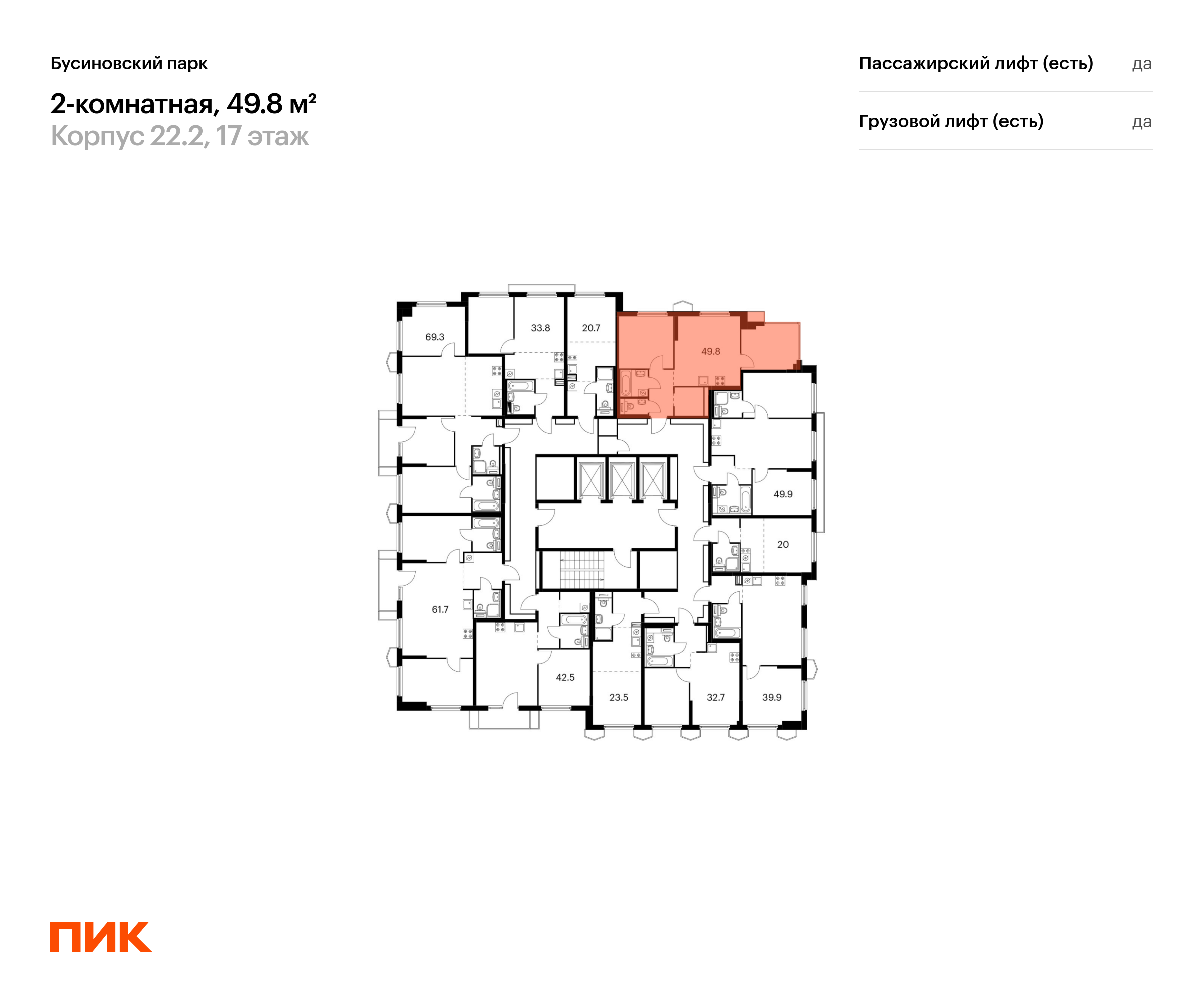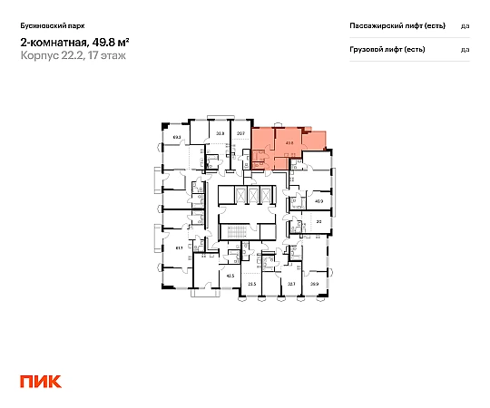 Продаётся 2-комн.квартира площадью 49.80 кв.м на 17 этаже 24 этажного дома (Корпус 22.2, секция 2) проекта ПИК Бусиновский парк. Светлый просторный подъезд на уровне земли, функциональная планировка, большие окна, с отделкой.