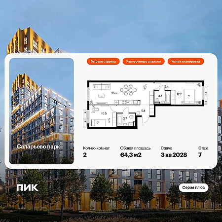 Проект принадлежит «Серии плюс». В «Серию плюс» входят жилые кварталы с повышенным уровнем комфорта и уникальной архитектурой. У квартир умные планировки: можно выбрать квартиру с мастер-спальней, где есть отдельная ванная комната, с просторной кухней-гостиной, с двумя санузлами, с гардеробной или постирочной. В светлых уютных лобби с дизайнерской отделкой предусмотрены колясочная и гостевой санузел.