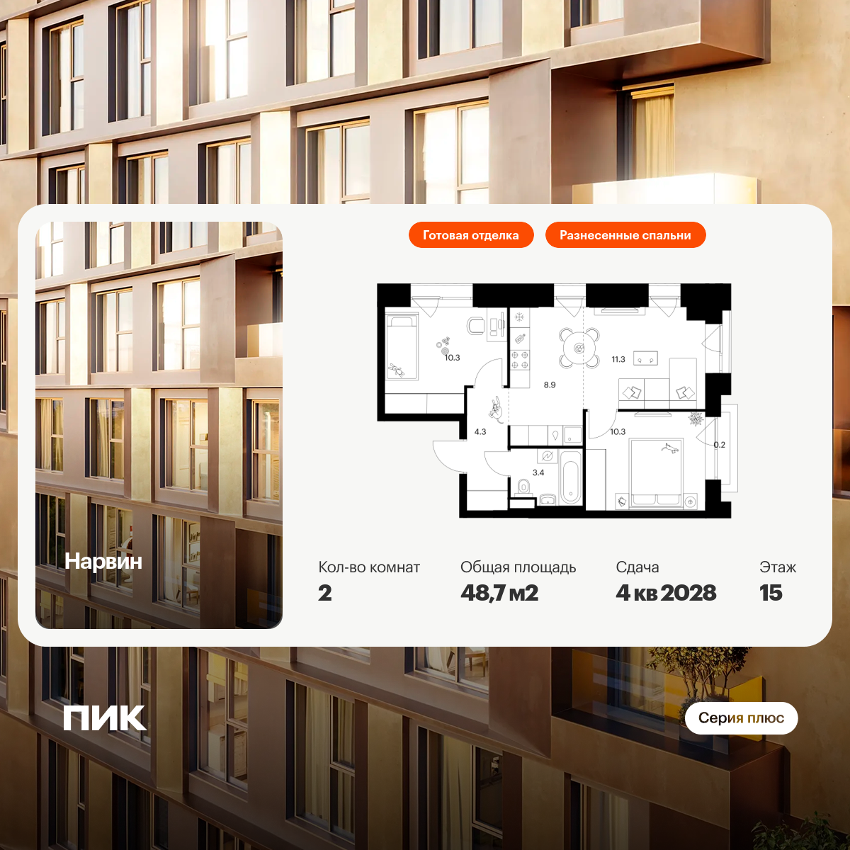 В проекте широкий выбор планировок с мастер-спальнями, кухнями-нишами, гардеробными и постирочными. Семьям с детьми понравятся квартиры со спальнями, разнесёнными по разные стороны гостиной. Мы предусмотрели множество вариантов остекления и балконов: есть планировки с панорамными и угловыми окнами, угловыми и классическими балконами. А для тех, кто хочет получить максимум пространства, есть квартиры с потолками до 5,3 метра. Артикул - 972239