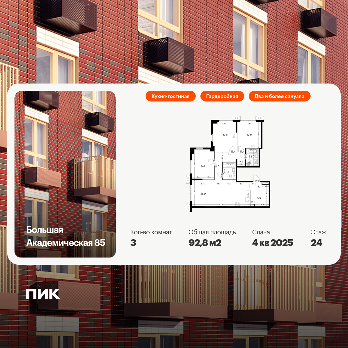 Купить 3к квартиру 87 м² в ЖК Кронштадтский 9