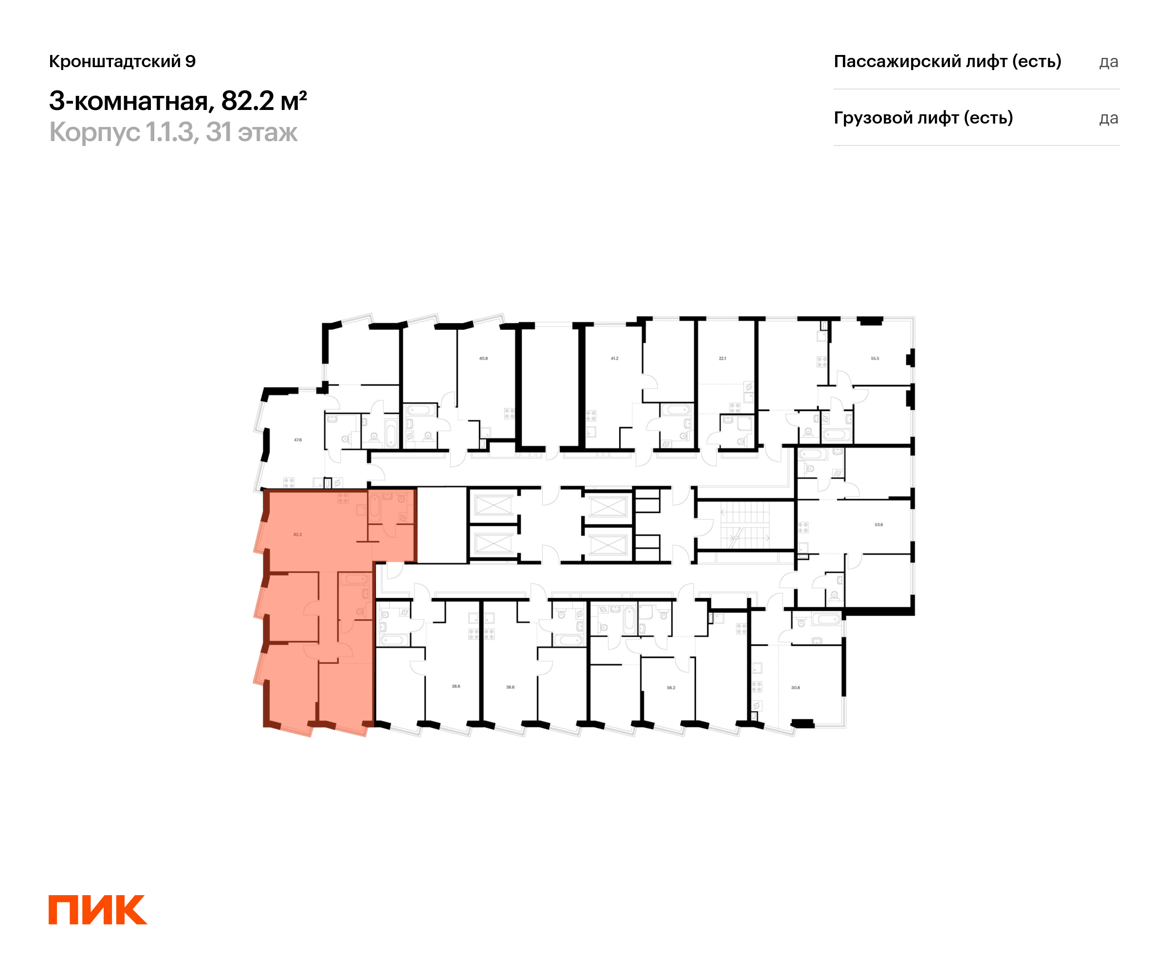 Продаётся 3-комн.квартира площадью 87.10 кв.м на 9 этаже 12 этажного дома (Корпус 1.1.2, секция 2) проекта ПИК Кронштадтский 9. Светлый просторный подъезд на уровне земли, функциональная планировка, большие окна, с отделкой.
