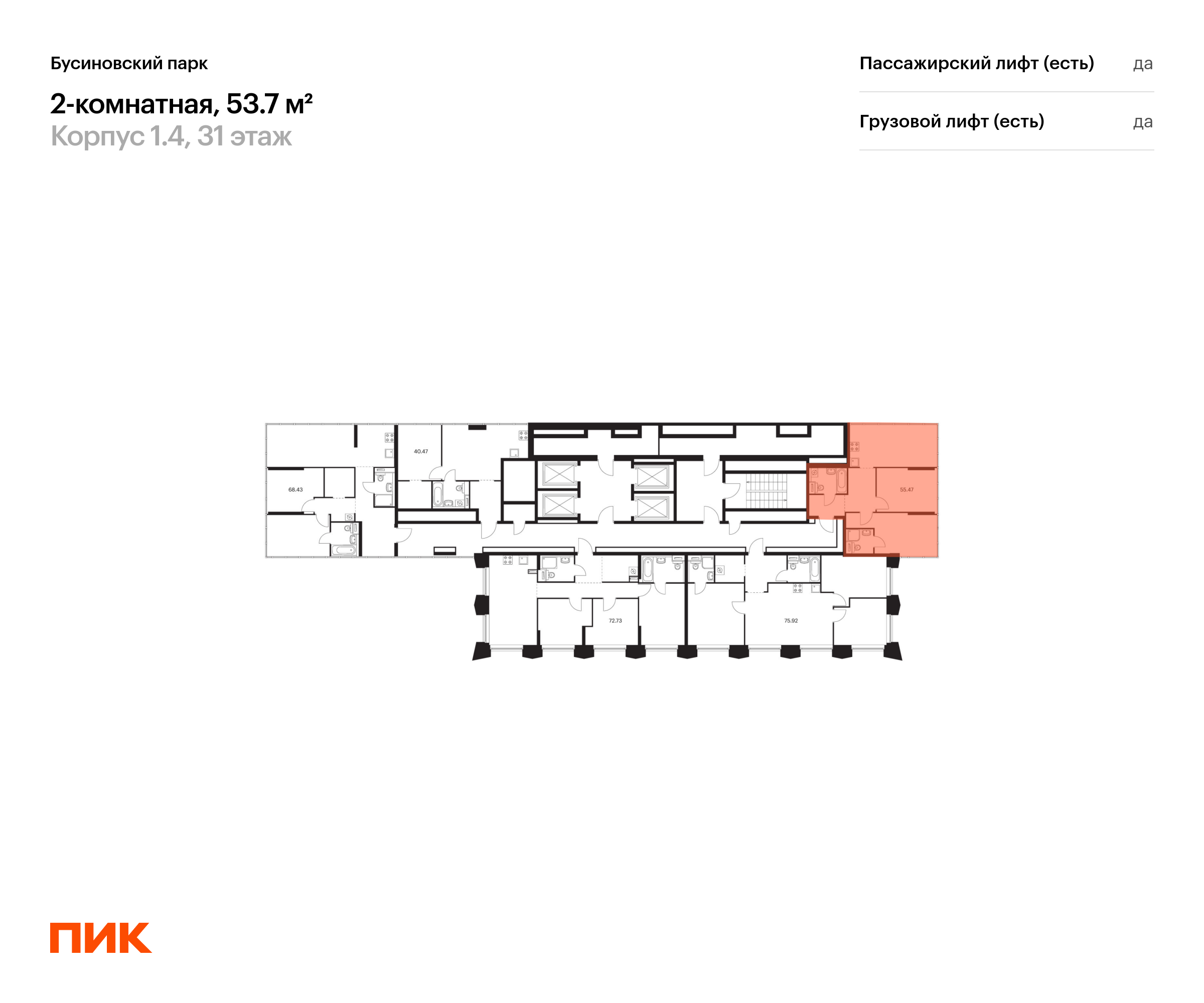Продаётся 2-комн.квартира площадью 53.70 кв.м на 31 этаже 32 этажного дома (Корпус 1.4, секция 2) проекта ПИК Бусиновский парк. Светлый просторный подъезд на уровне земли, функциональная планировка, большие окна, с отделкой.