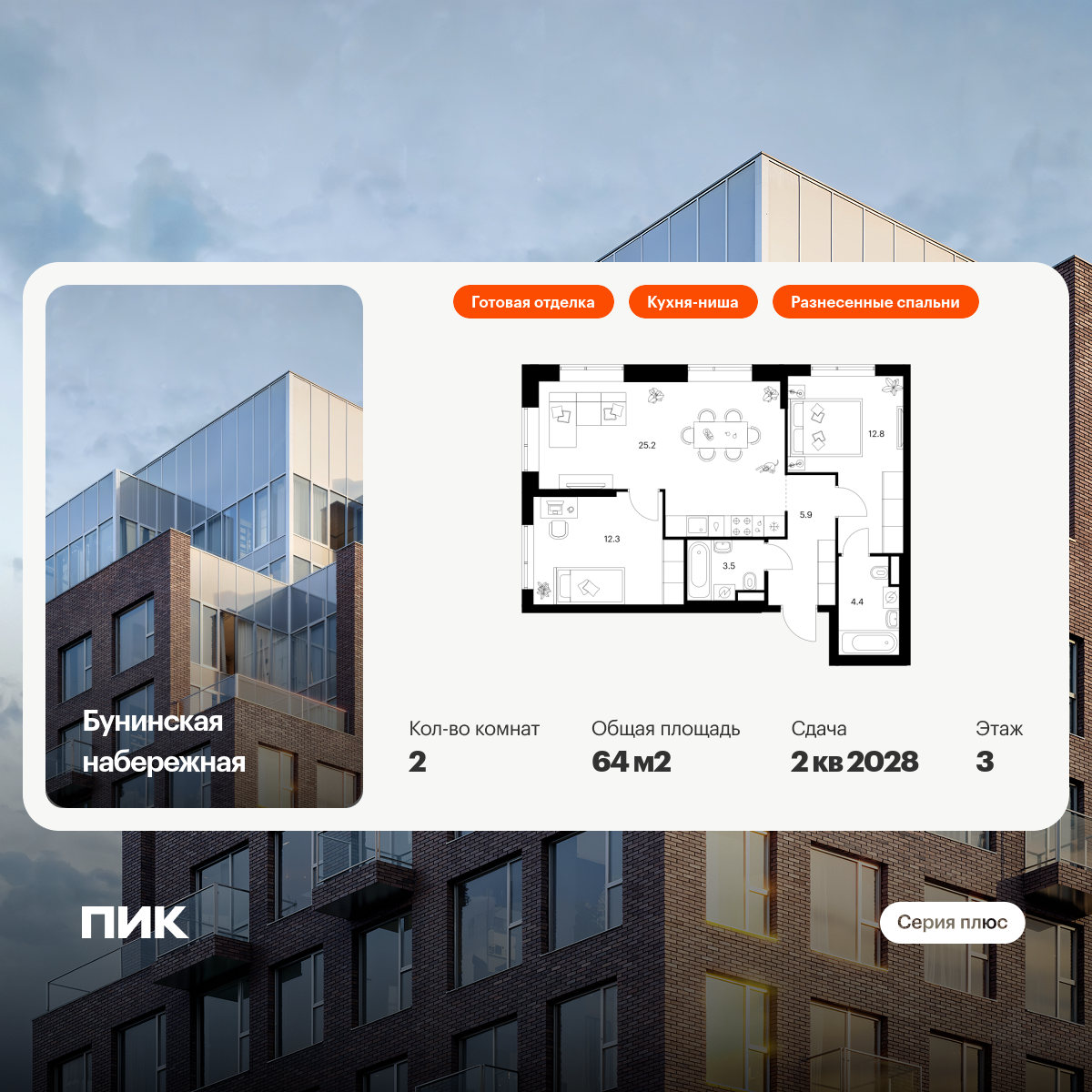 В проекте широкий выбор продуманных и функциональных планировок для разных сценариев жизни. Мы предусмотрели мастер-спальни с собственной ванной и выделенной зоной для гардероба. Также есть варианты с компактной кухней-нишей, постирочной и сквозным санузлом.