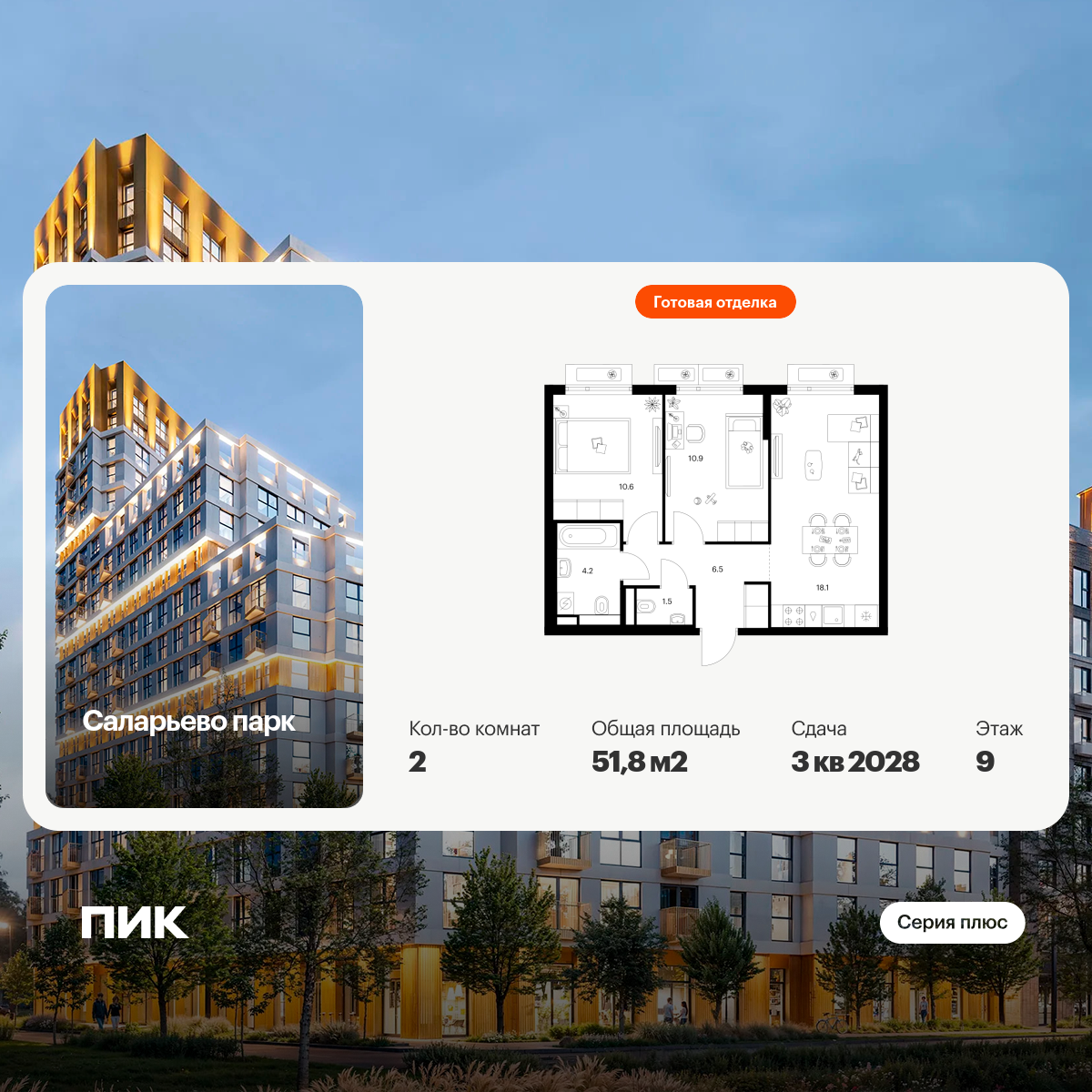 Планировки в проекте максимально продуманные и адаптивные: есть варианты с мастер-спальней, кухней-гостиной, сквозным санузлом и гардеробной. Можно выбрать квартиру с террасой или открытым балконом. Окна в пол и угловые окна дадут ощущение простора, а виды на долину реки Горетовки станут неотъемлемой частью вашего интерьера. Все квартиры сдаются с готовой отделкой — можно сразу переехать. Артикул - 970610