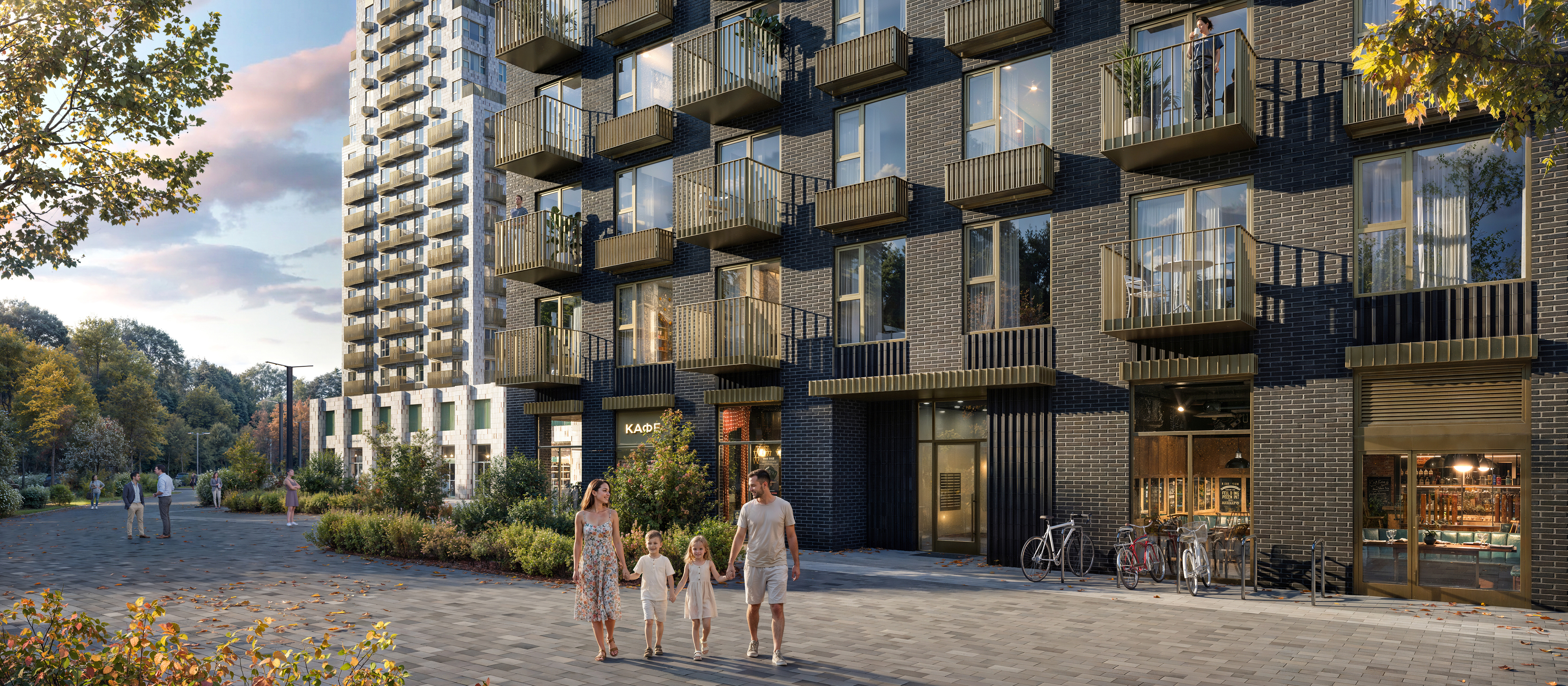 На территории квартала появятся две школы, два детских сада — один уже открыт — и паркинг. На первых этажах домов работают магазины и полезные сервисы. В уютных дворах-парках появятся детские и спортивные площадки, кофейни и зоны отдыха. А через квартал протянется пешеходный бульвар для неспешных прогулок у дома.