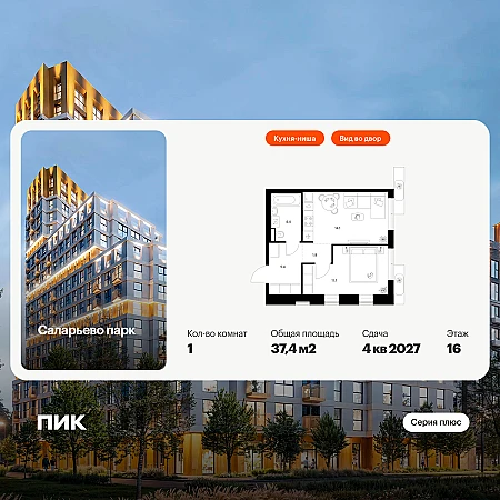 Купить 1к квартиру 42 м² в ЖК Зелёный Парк