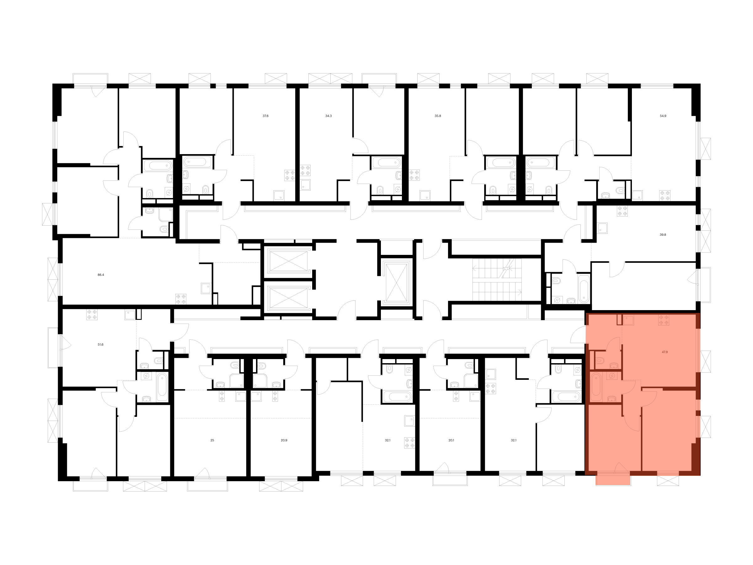 Купить 2к квартиру 47 м² в ЖК Яуза парк