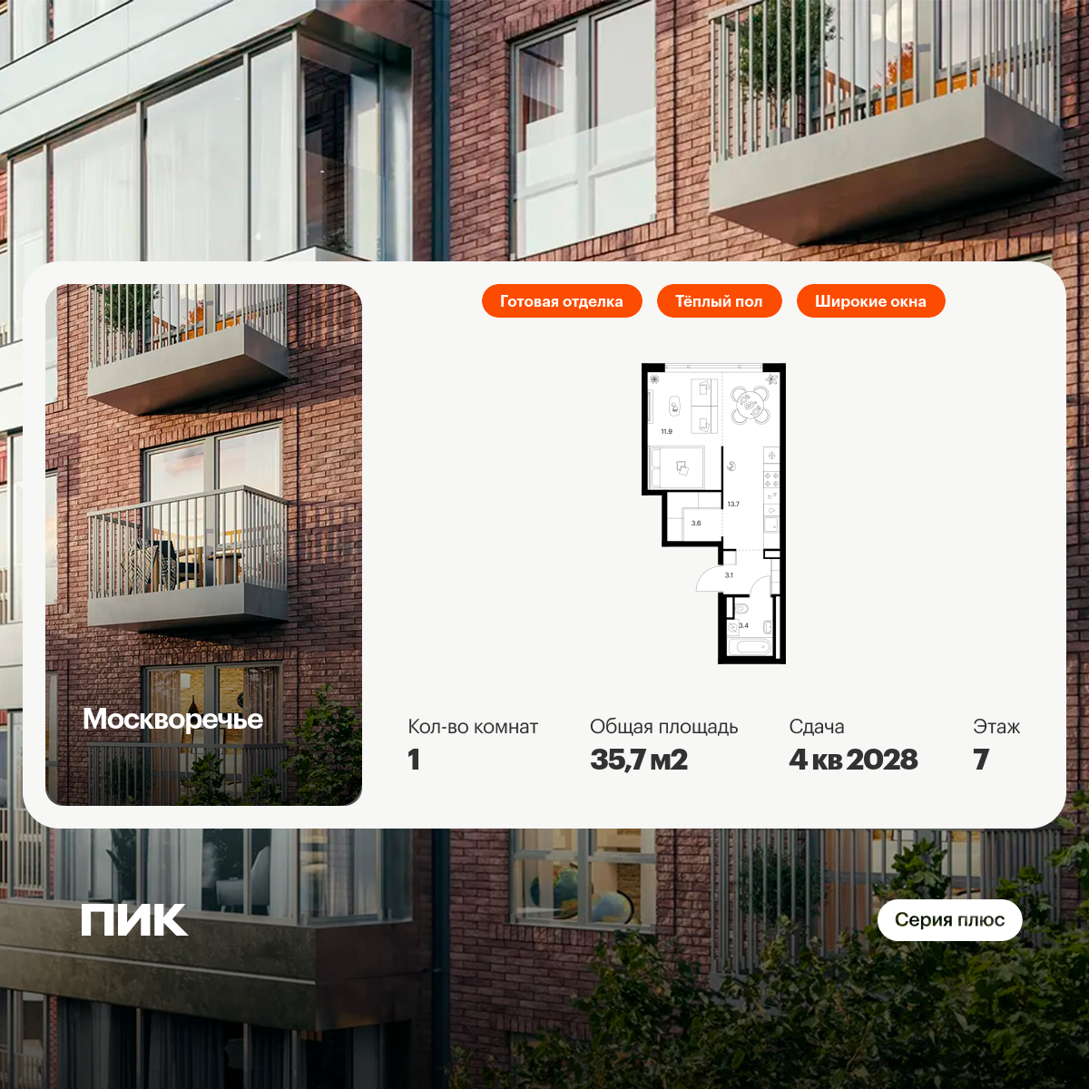 Для ценителей простора и обилия солнечного света мы предусмотрели квартиры с окнами в пол, террасами, а также французскими, фигурными и открытыми классическими балконами. Артикул - 995394