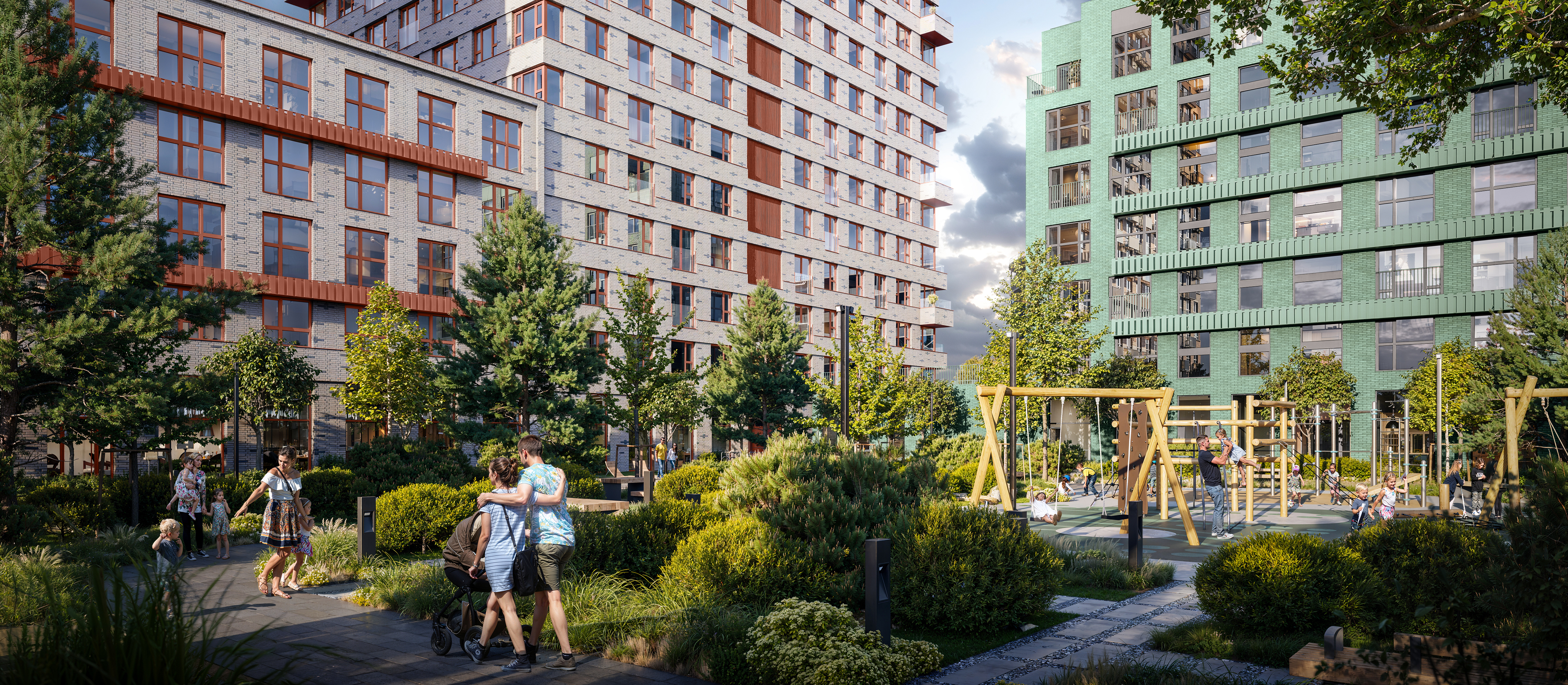В уютных дворах-парках есть места для отдыха и детские площадки. Через квартал протянется пешеходный бульвар, где приятно гулять, отдыхать на удобных скамейках и шезлонгах или играть в настольный теннис. Маленькие жители оценят современные детские площадки с каруселями, горками и лазательными комплексами. Для любителей спорта в квартале появится СпортПарк — большое пространство для командных игр и индивидуальных тренировок.