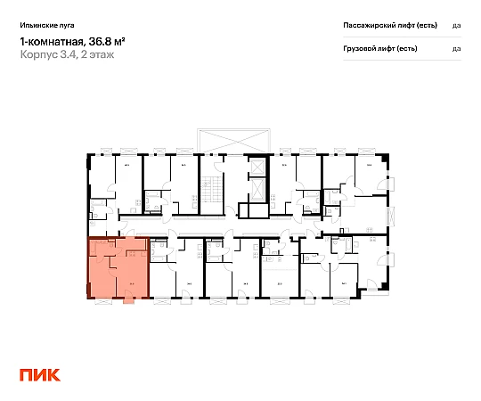 Продаётся 1-комн.квартира площадью 36.80 кв.м на 2 этаже 9 этажного дома (Корпус 3.4, секция 1) проекта ПИК Ильинские луга. Светлый просторный подъезд на уровне земли, функциональная планировка, большие окна, с отделкой.