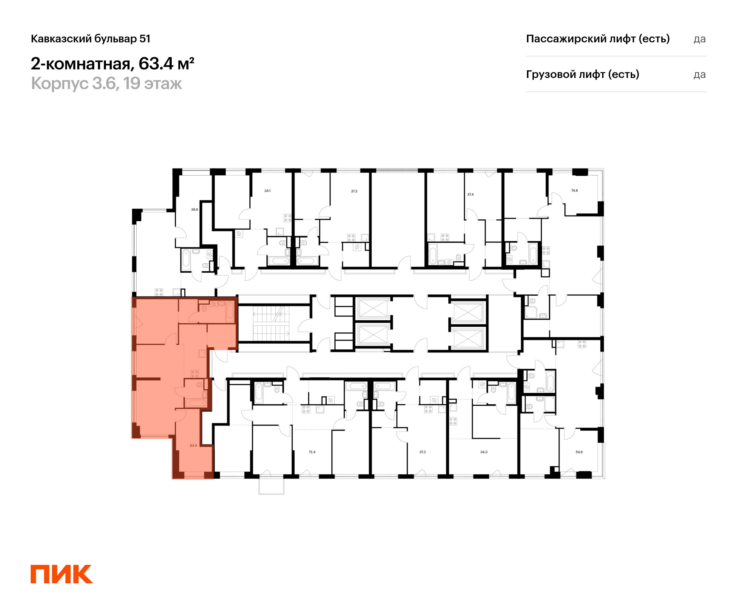 Продаётся 2-комн.квартира площадью 63.40 кв.м на 19 этаже 32 этажного дома (Корпус 3.6, секция 3) проекта ПИК Кавказский бульвар 51. Светлый просторный подъезд на уровне земли, функциональная планировка, большие окна, с отделкой.