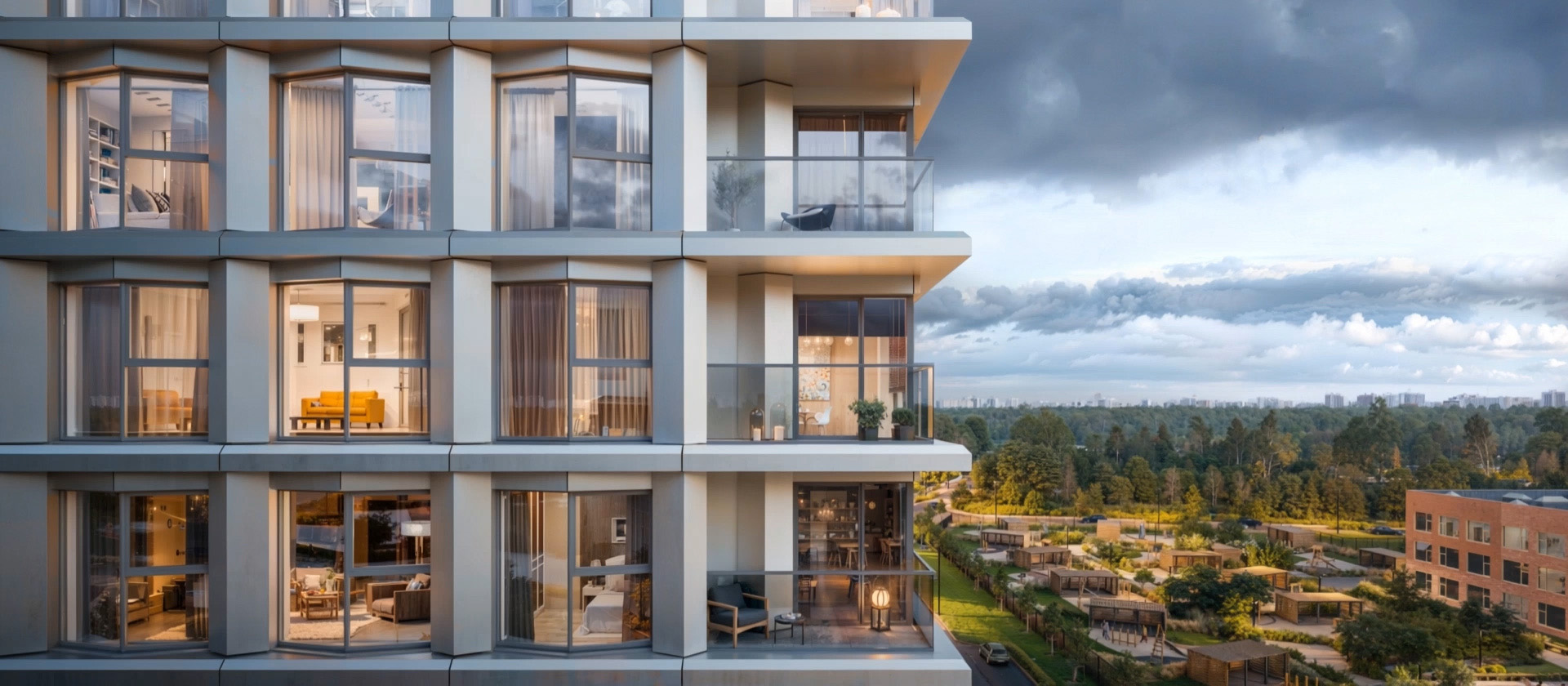 Акцентные белые корпуса с большими окнами делают архитектуру квартала мощной и запоминающейся. А в лобби «Матвеевского парка» будет удобная зона ожидания, где можно встретить друзей, курьера или дождаться такси, а также гостевая туалетная комната и колясочная.