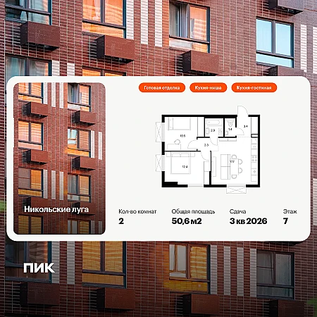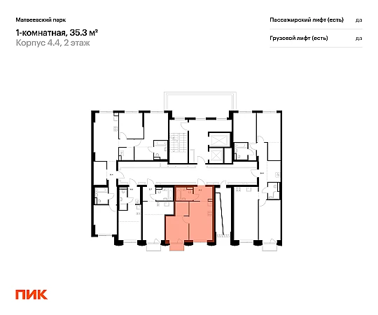 Продаётся 1-комн.квартира площадью 35.30 кв.м на 2 этаже 13 этажного дома (Корпус 4.4, секция 2) проекта ПИК Матвеевский парк. Светлый просторный подъезд на уровне земли, функциональная планировка, большие окна, с отделкой.