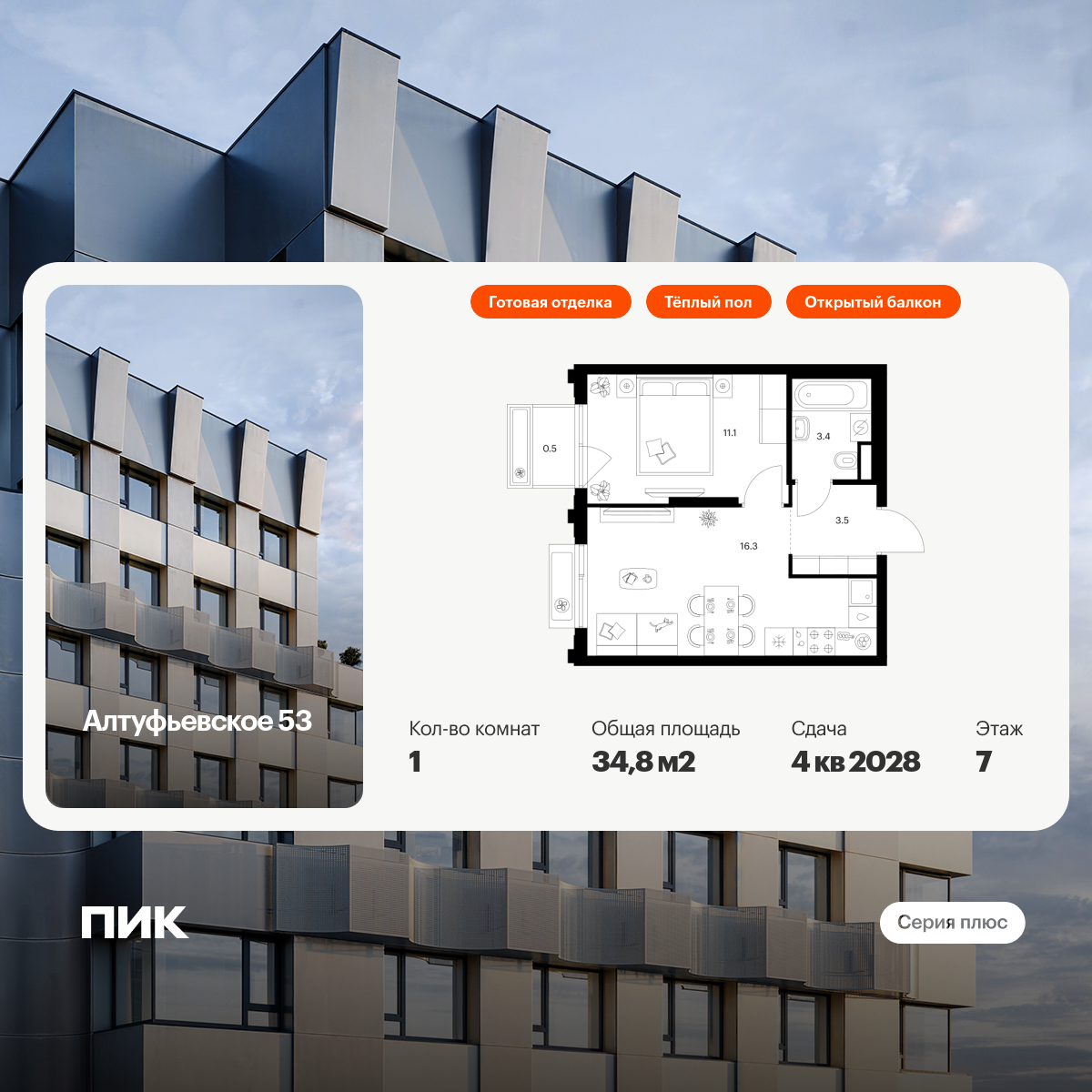 Продаётся 1-комн.квартира площадью 35.00 кв.м на 43 этаже 53 этажного дома (Корпус 1.4, секция 1) проекта ПИК Полар. Светлый просторный подъезд на уровне земли, функциональная планировка, большие окна, с отделкой.