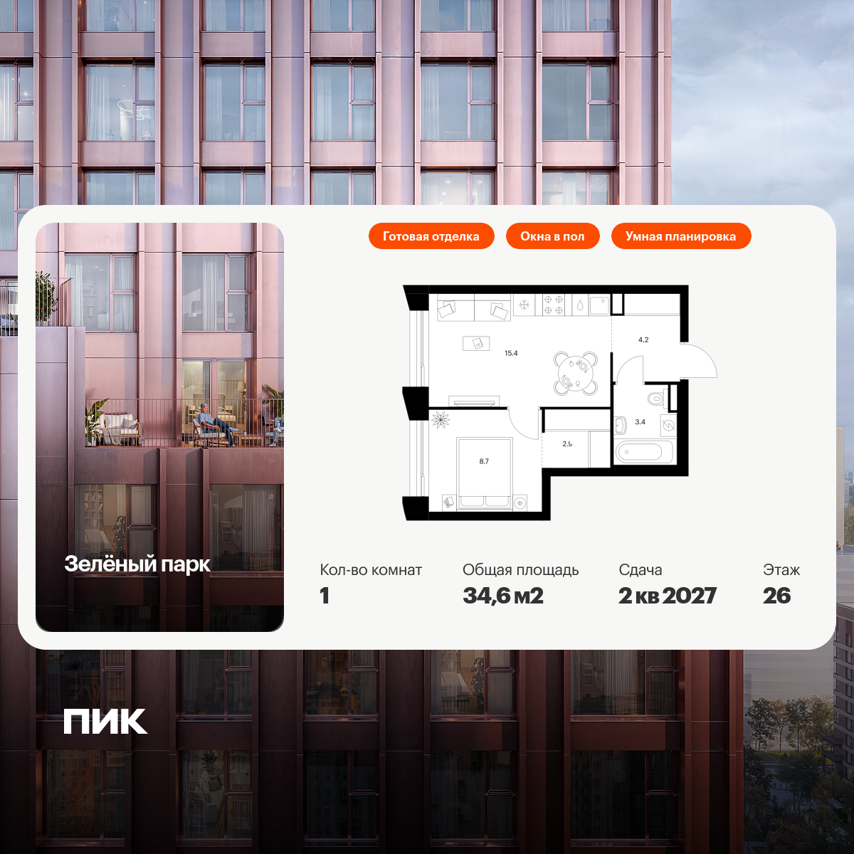 В проекте широкий выбор планировок: от компактных и продуманных студий до просторных трёхкомнатных квартир для большой семьи. Есть удобные форматы с кухней-гостиной, гардеробной и двумя санузлами. Для ценителей простора и обилия солнечного света мы предусмотрели угловые окна и балконы. А с верхних этажей откроется впечатляющий вид на Медведковский заказник, Останкинскую башню и Москва-Сити. Артикул - 875866