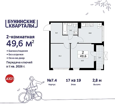 Купить 1к квартиру 37 м² в ЖК 2-й Иртышский