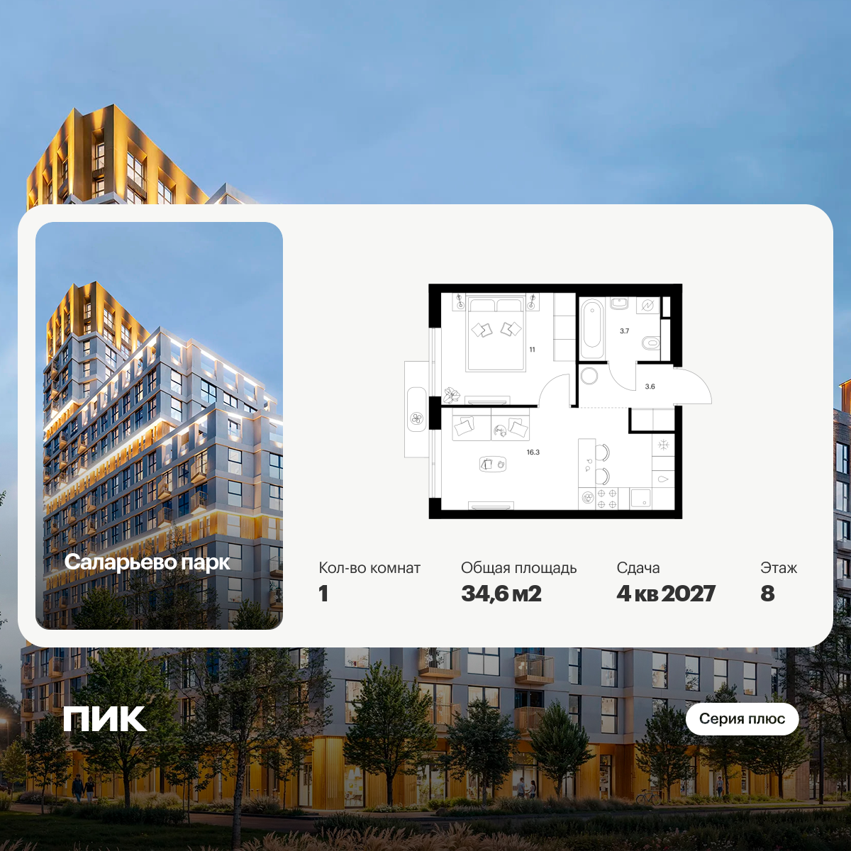 Купить 1к квартиру 35 м² в ЖК Саларьево парк