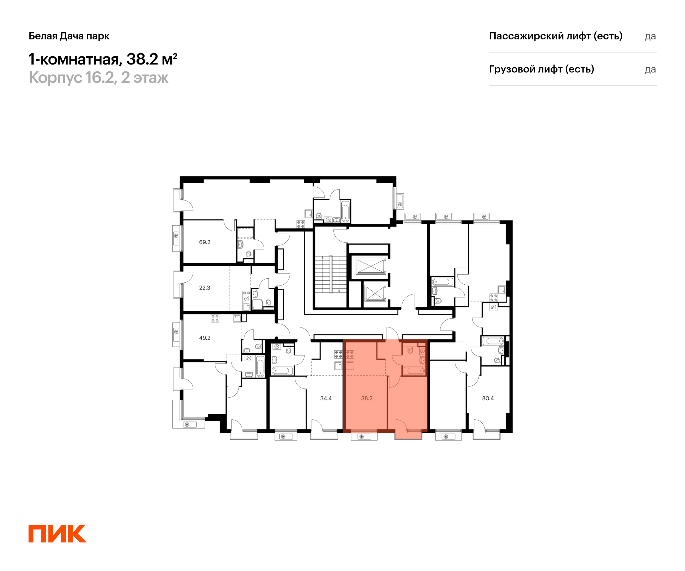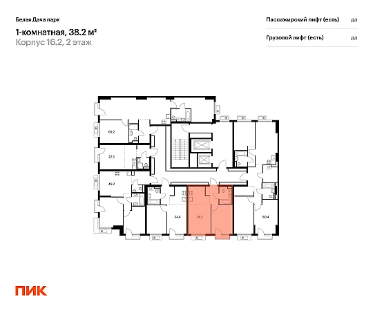 Продаётся 1-комн.квартира площадью 38.20 кв.м на 2 этаже 20 этажного дома (Корпус 16.2, секция 7) проекта ПИК Белая Дача парк. Светлый просторный подъезд на уровне земли, функциональная планировка, большие окна, с отделкой.