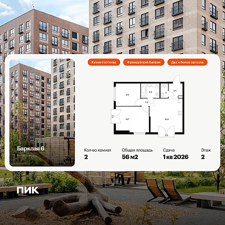 Купить 2к квартиру 56 м² в ЖК Барклая 6