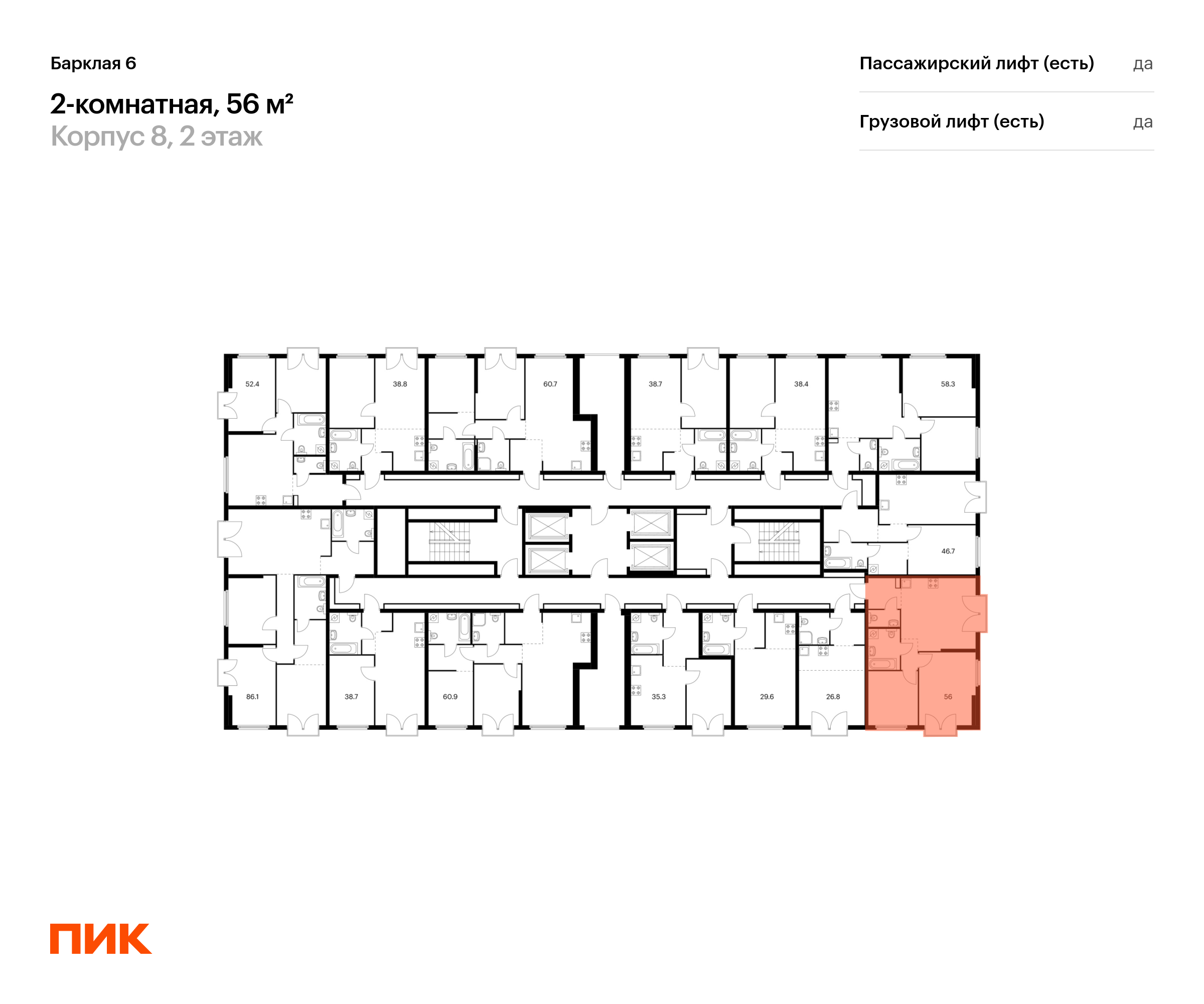 Продаётся 2-комн.квартира площадью 56.00 кв.м на 2 этаже 32 этажного дома (Корпус 8, секция 3) проекта ПИК Барклая 6. Светлый просторный подъезд на уровне земли, функциональная планировка, большие окна, с отделкой.