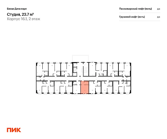 Продаётся квартира-студия площадью 23.70 кв.м на 2 этаже 14 этажного дома (Корпус 16.1, секция 2) проекта ПИК Белая Дача парк. Светлый просторный подъезд на уровне земли, функциональная планировка, большие окна, с отделкой.
