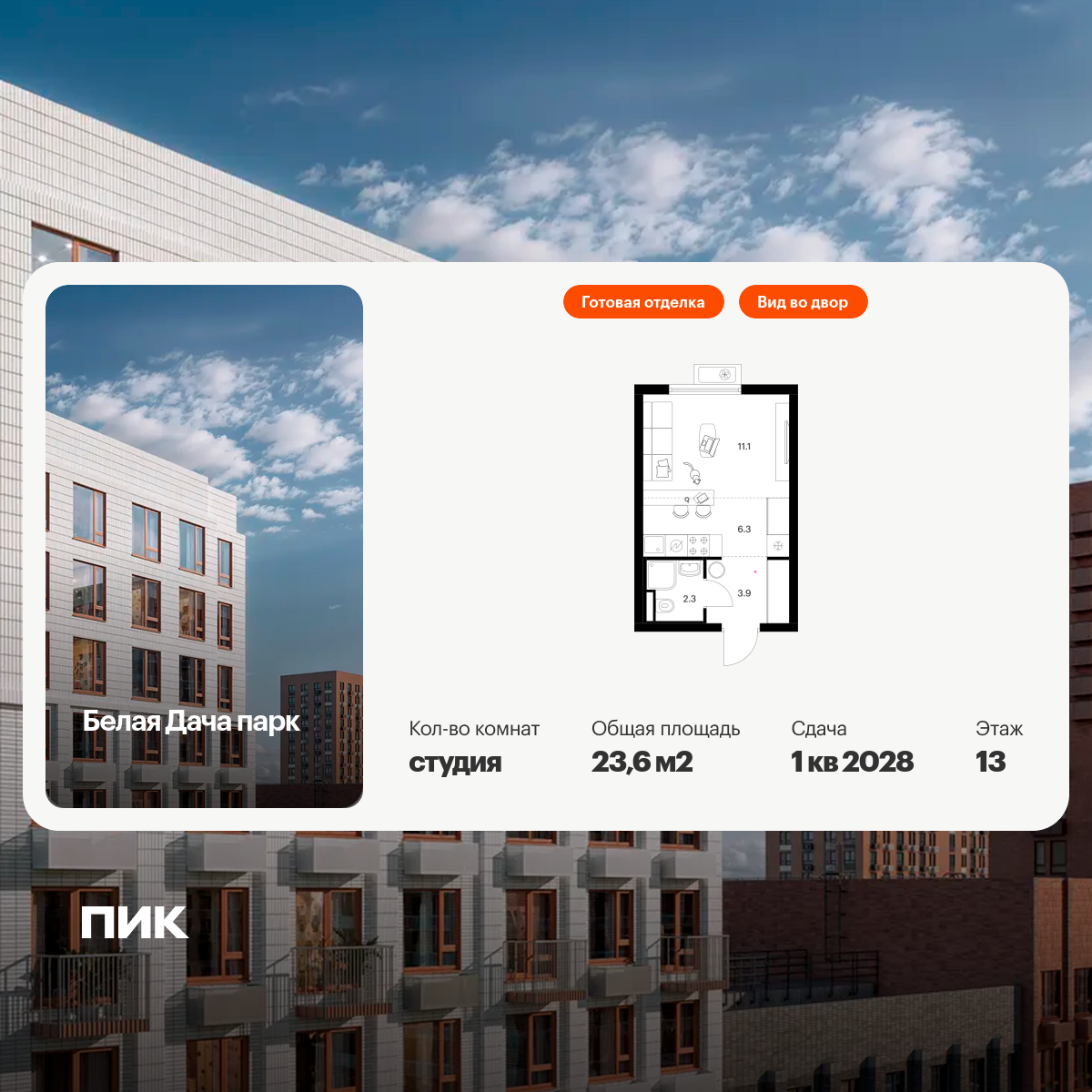 Купить квартиру студию 23 м² в ЖК Белая Дача парк