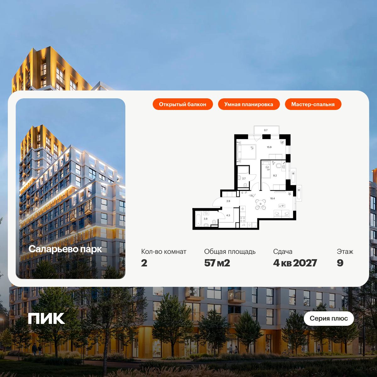 Архитектурную концепцию корпусов «Серии плюс» разработала российское бюро КК. У каждого здания свой характер за счёт уникальной формы и рельефа фасадов. А разноуровневые завершения башен создают выразительные силуэты.