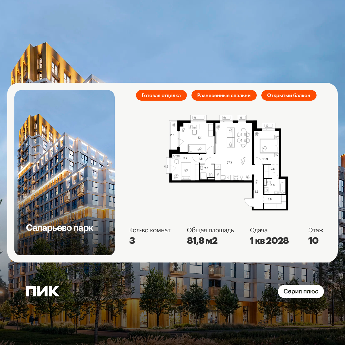 В «Мичуринском парке» широкий выбор планировок для разных сценариев жизни. Мы предусмотрели мастер-спальни с собственной ванной и местом для гардероба. Есть планировки с просторной кухней-гостиной, постирочной и дополнительным санузлом. В проекте можно найти уникальные форматы квартир с эркерами, окнами в пол, одним или двумя балконами в квартире. Артикул - 983843